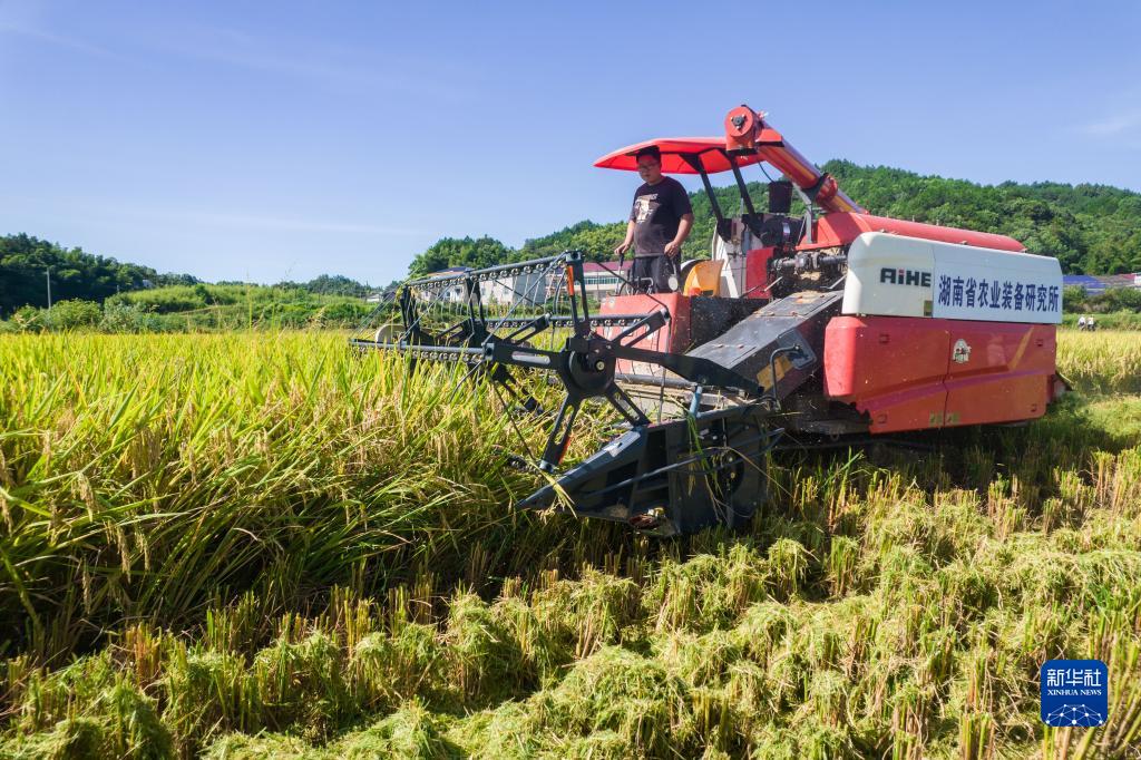 這是8月10日在湖南省長沙市寧鄉市流沙河鎮拍攝的“一季雜交稻+再生稻”生產模式寧鄉示范基地頭季稻測產驗收現場(無人機照片)。