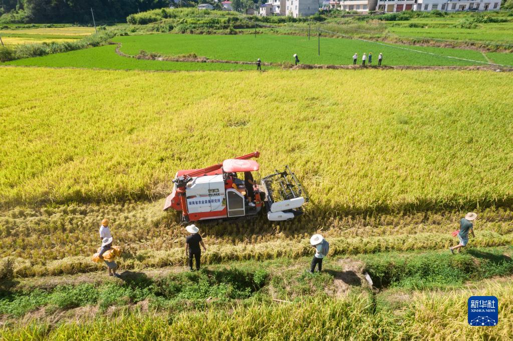 這是8月10日在湖南省長(zhǎng)沙市寧鄉(xiāng)市流沙河鎮(zhèn)拍攝的“一季雜交稻+再生稻”生產(chǎn)模式寧鄉(xiāng)示范基地頭季稻測(cè)產(chǎn)驗(yàn)收現(xiàn)場(chǎng)(無(wú)人機(jī)照片)。