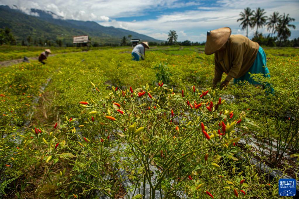8月10日,農民在印度尼西亞中蘇拉威西省帕盧的辣椒地里收獲辣椒。