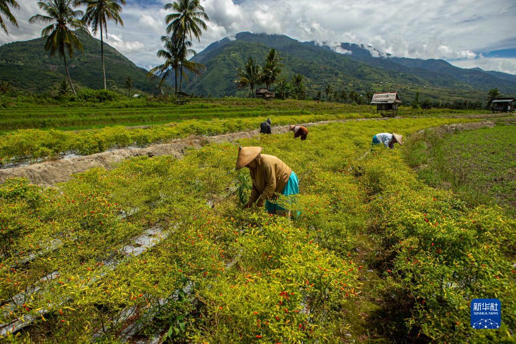 8月10日,農民在印度尼西亞中蘇拉威西省帕盧的辣椒地里收獲辣椒。