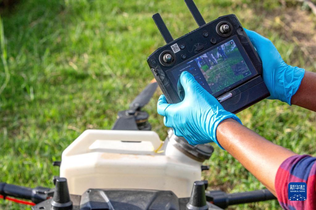 8月1日,尼空在泰國黎逸府操作大疆農業植保無人機。