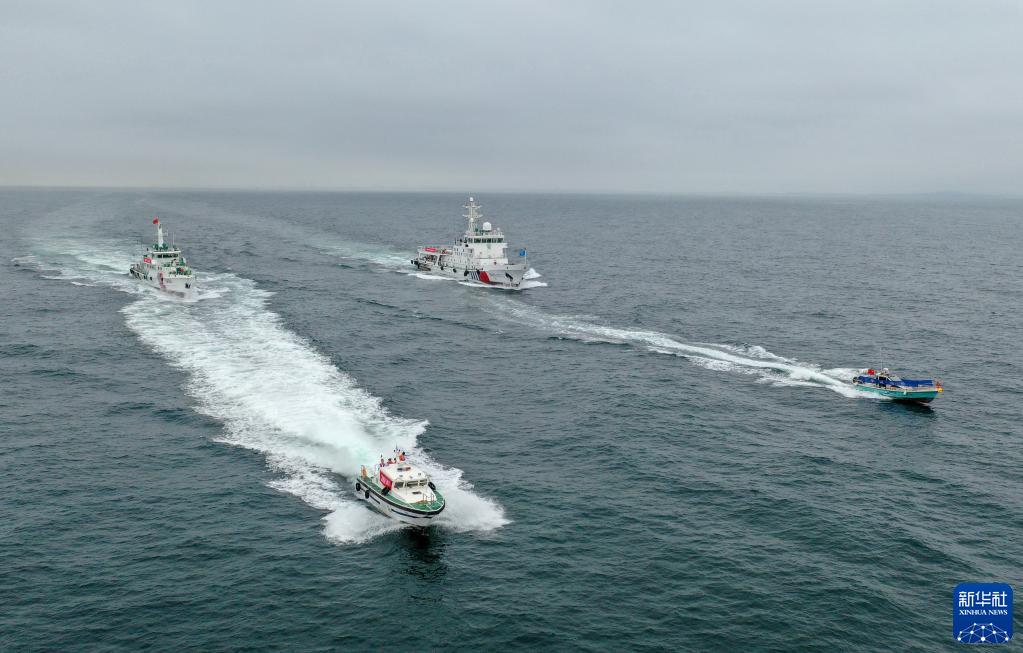 8月10日,執(zhí)法船只在相關(guān)海域開展聯(lián)合巡邏(無人機(jī)照片)。