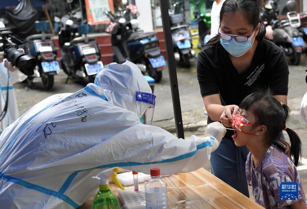 8月11日,在三亞市天涯區(qū)南邊海漁村,河南省援海南三亞醫(yī)療隊(duì)的醫(yī)護(hù)人員原清怡為居民做核酸檢測。