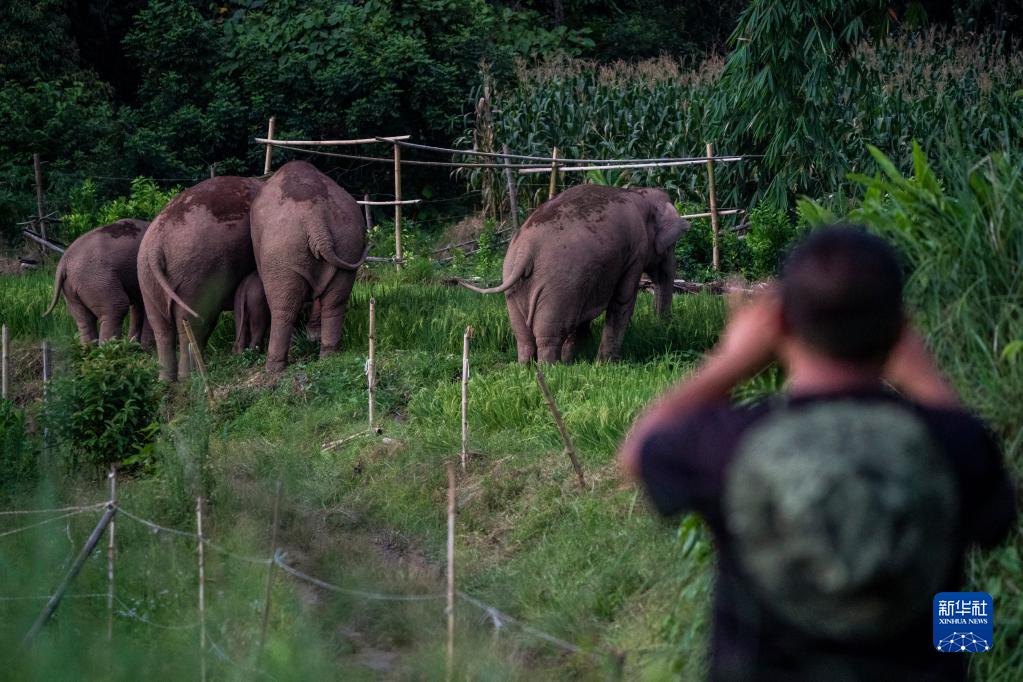 刁發(fā)興在觀察象群(8月1日攝)。