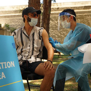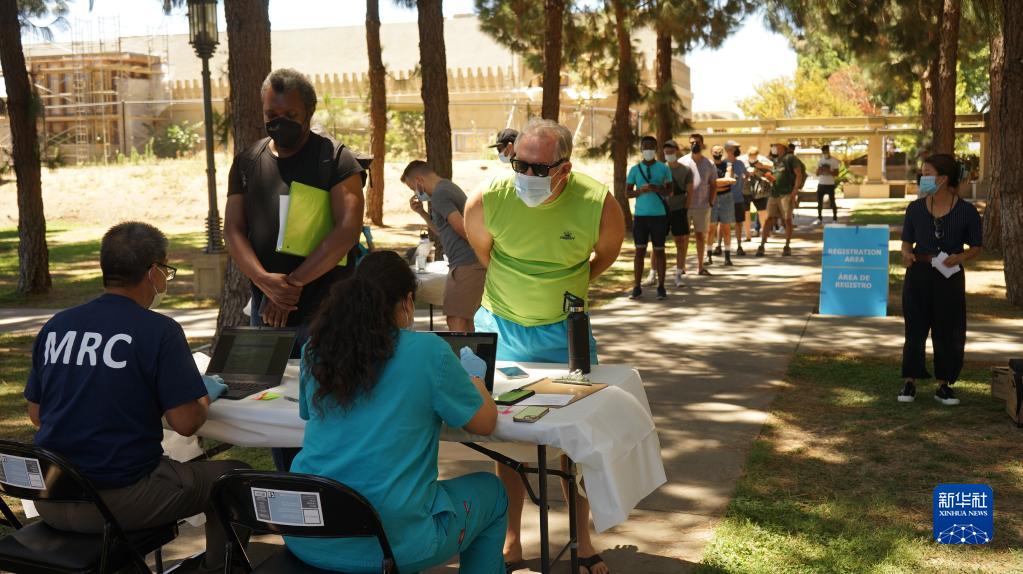 8月11日,人們在美國洛杉磯一處猴痘疫苗接種點(diǎn)排隊(duì)接種。