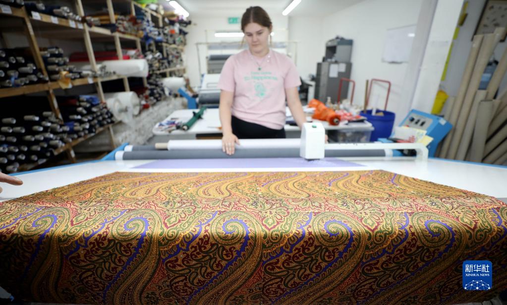 8月11日,工人在英國麥克爾斯菲爾德一家絲綢工廠內工作。