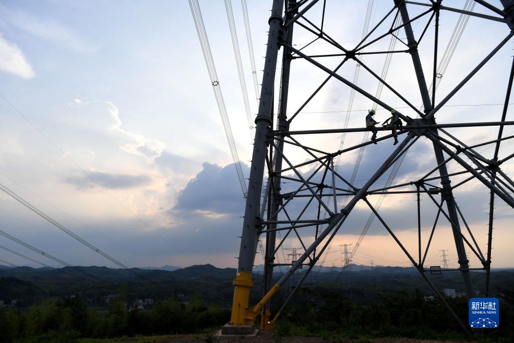 8月11日,安徽送變電工程有限公司廣德運檢站運維人員在維護可視化在線監控設備。