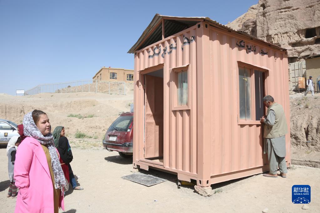 這是7月13日在阿富汗巴米揚(yáng)拍攝的文物保護(hù)工作站。