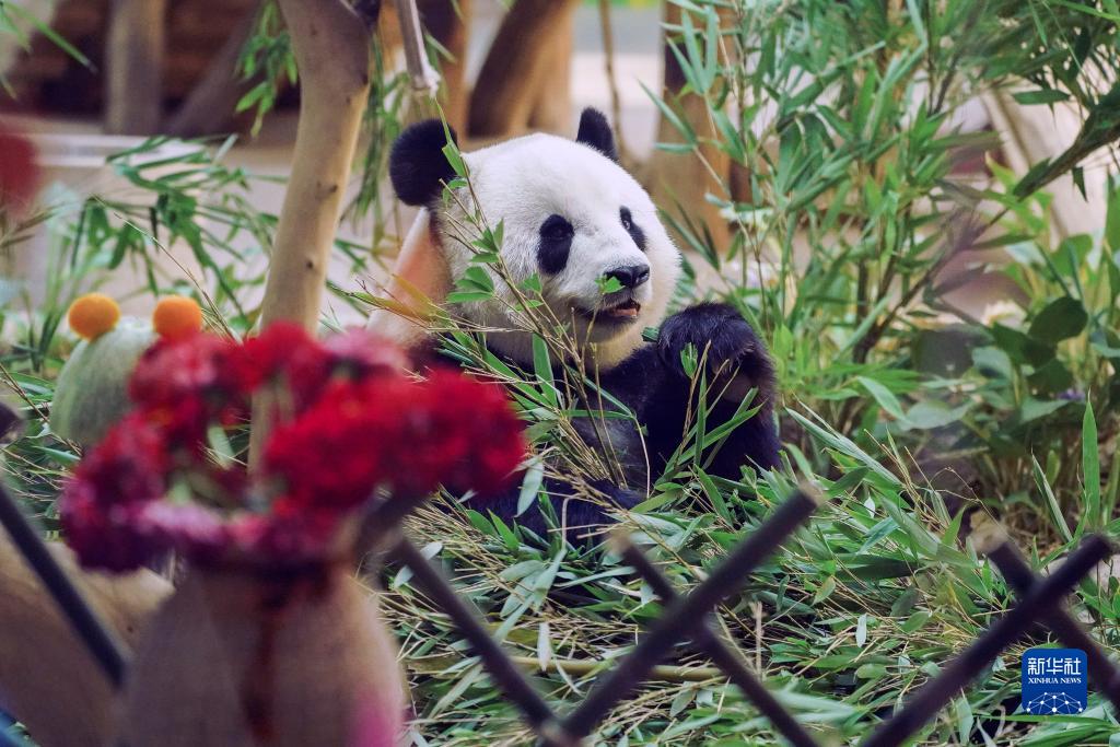 當日,位于黑龍江省尚志市的中國亞布力熊貓館里,大熊貓思嘉度過了自己16歲生日。飼養員為思嘉準備了用冰做的生日蛋糕、水果、鮮竹筍等美食,還有玩具和鮮花,思嘉在自己的生日派對上邊吃邊玩,萌態十足。