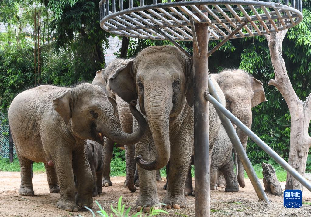這是8月12日在廣州長隆野生動物世界拍攝的亞洲象家族。新華社記者 劉大偉 攝