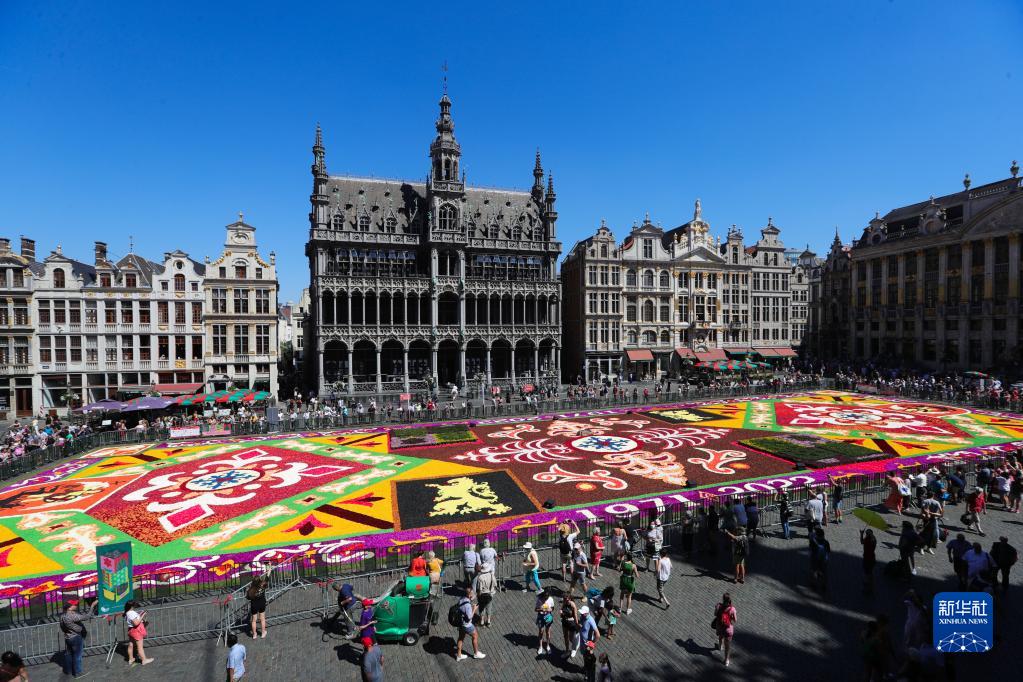 8月12日,民眾在比利時布魯塞爾大廣場參觀“鮮花地毯”。