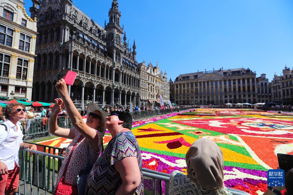 8月12日,民眾在比利時布魯塞爾大廣場參觀“鮮花地毯”。
