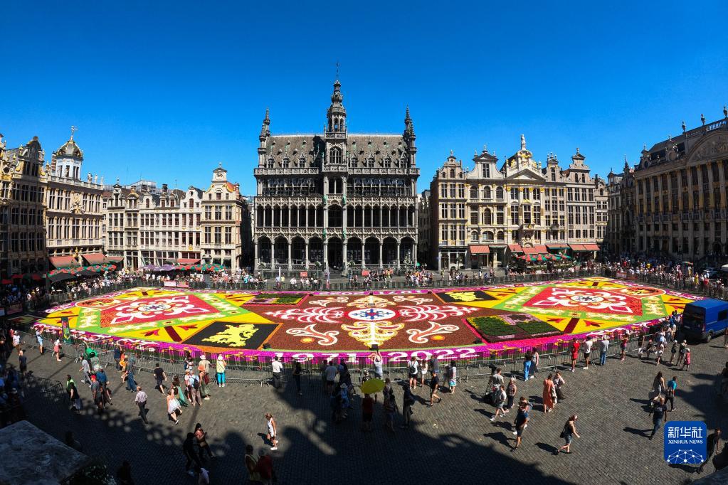 8月12日,民眾在比利時布魯塞爾大廣場參觀“鮮花地毯”。