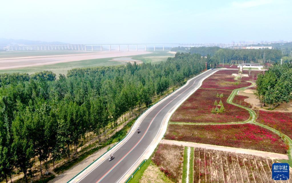 目前,黃河河南段干流右岸生態廊道已基本貫通,左岸已貫通489公里,累計完成綠化11.27萬畝。俯瞰黃河生態廊道,猶如一條“綠飄帶”沿黃河蜿蜒。