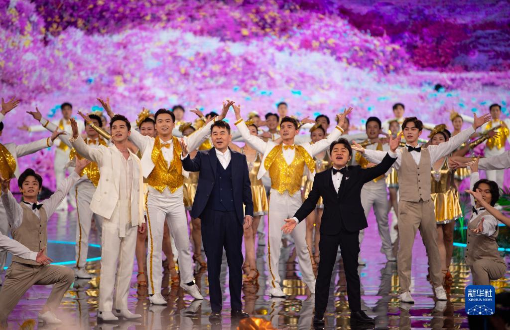 8月12日,演員許魏洲(前左二)、陳建斌(前左三)和王祖藍(lán)(前右一)在開幕式上演出。