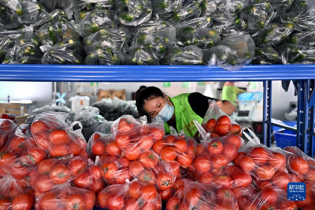 8月13日,三亞美菜網配送網點的工作人員在搬運蔬菜。