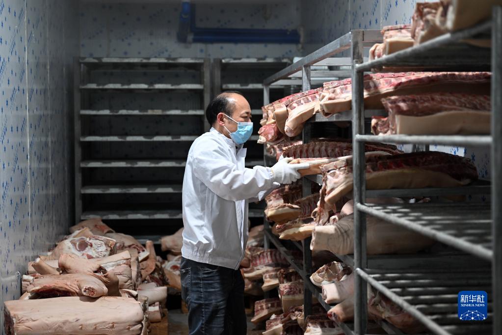 8月13日,三亞美菜網配送網點的工作人員在搬運冷鮮肉。