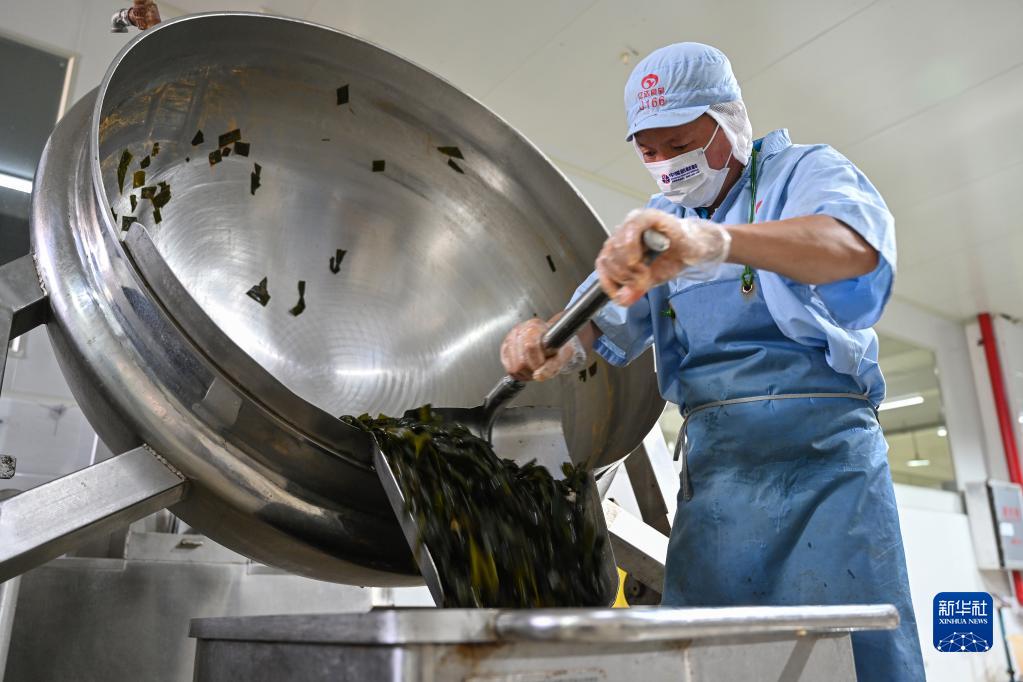 8月12日,在連江縣一家海帶食品加工企業車間,工人在加工海帶。
