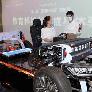 8月13日,參觀者在第八屆“互聯網+教育”創新周教育科技創新成果展上通過VR眼鏡體驗VR教育綜合解決方案。