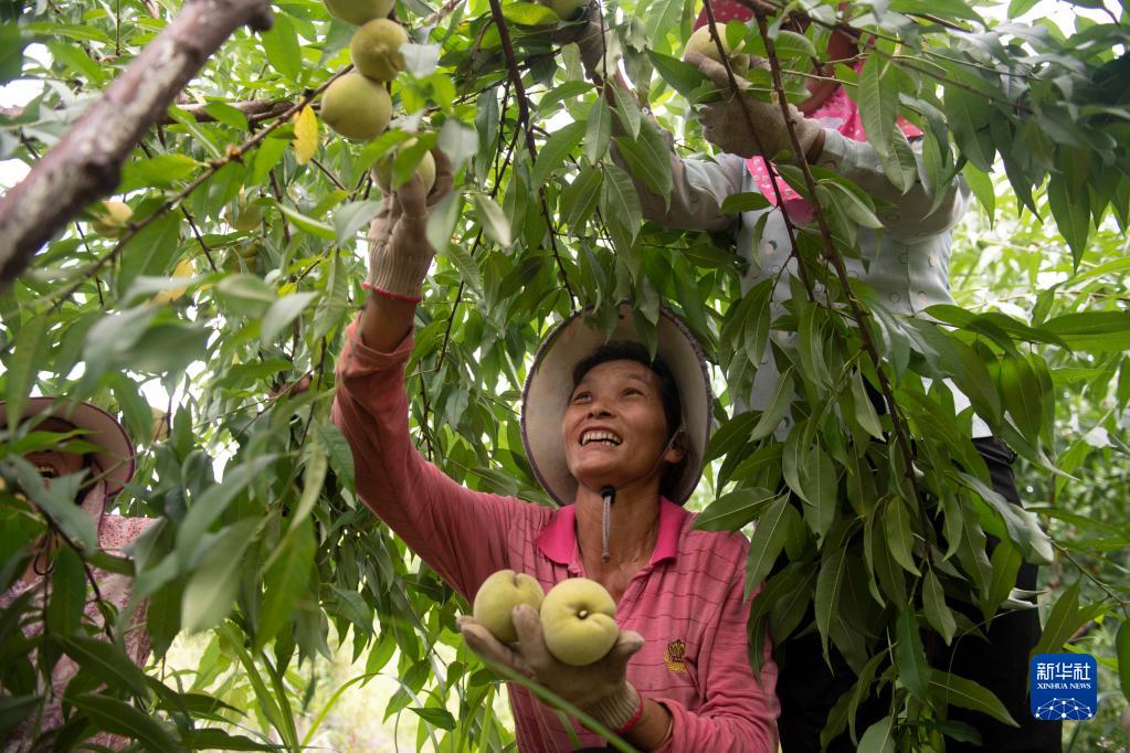 8月13日,湖南省永州市江華瑤族自治縣大路鋪鎮(zhèn)鄧家灣村,果農(nóng)在采摘青桃。