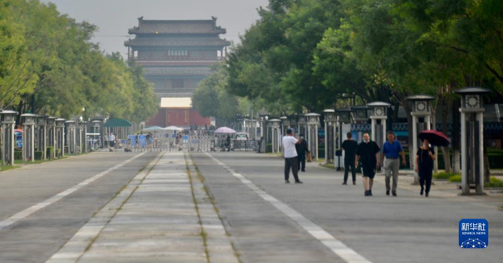 8月13日,市民在南中軸線御道景觀區(qū)內(nèi)參觀。
