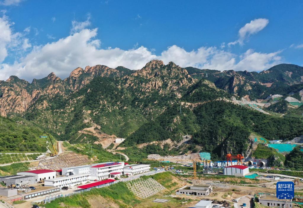 8月13日拍攝的秦皇島市撫寧抽水蓄能電站建設工地(無人機照片)。