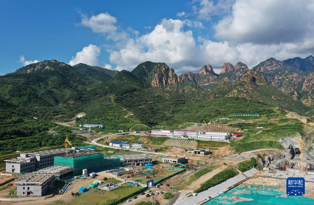 8月13日拍攝的秦皇島市撫寧抽水蓄能電站建設工地(無人機照片)。
