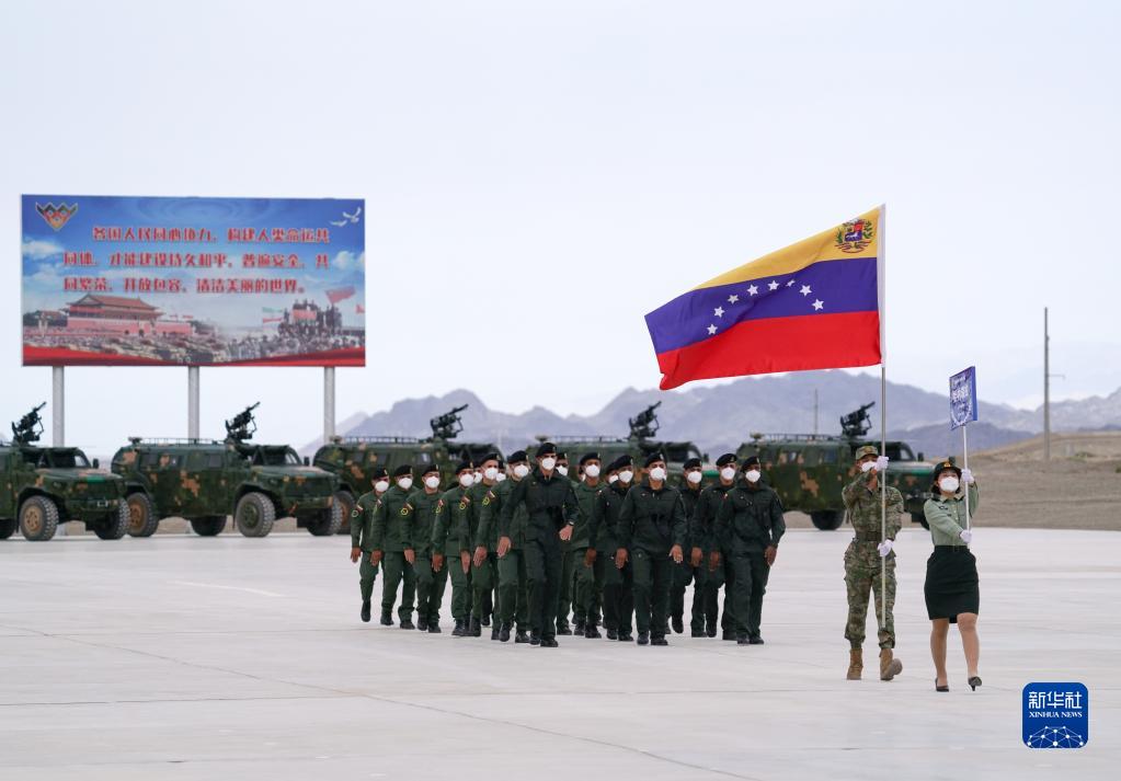8月13日,“國(guó)際軍事比賽-2022”中國(guó)庫(kù)爾勒賽區(qū)比賽開(kāi)幕,委內(nèi)瑞拉參賽隊(duì)走過(guò)主席臺(tái)。新華社發(fā)(欒鋮 攝)