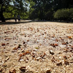8月13日,在英國倫敦圣詹姆斯公園,人們走過枯黃的草地。