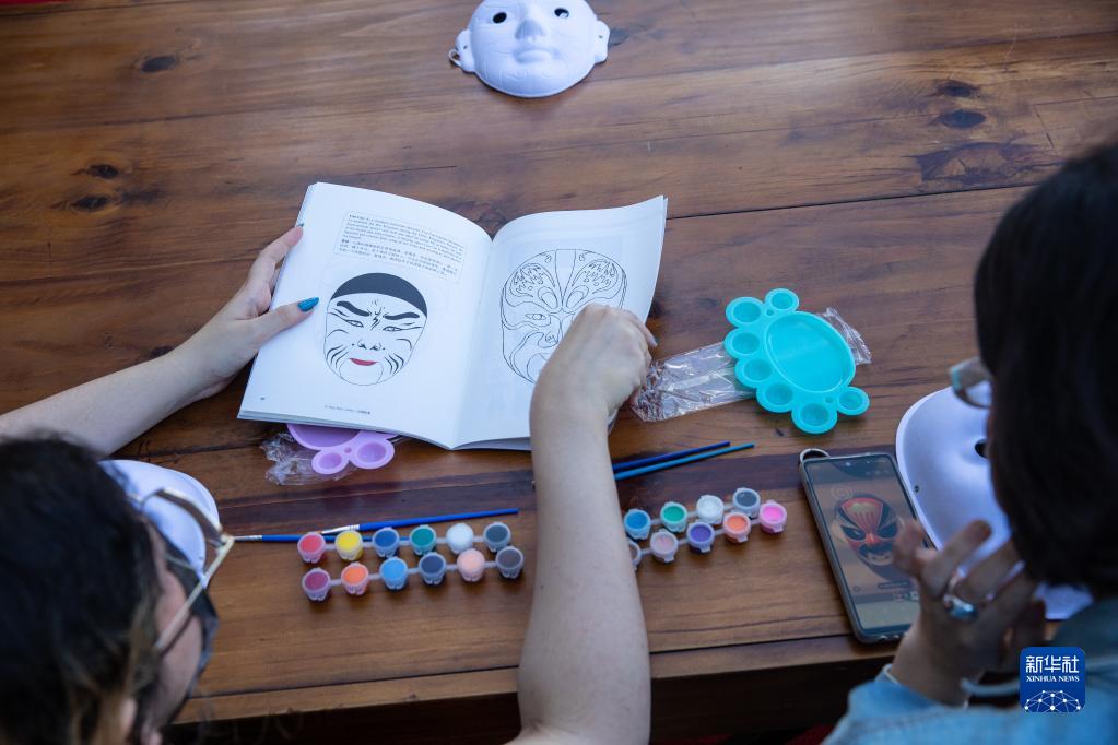 8月13日,在巴西首都巴西利亞舉辦的“中國一瞬”文化體驗周活動上,人們參加臉譜彩繪體驗活動。