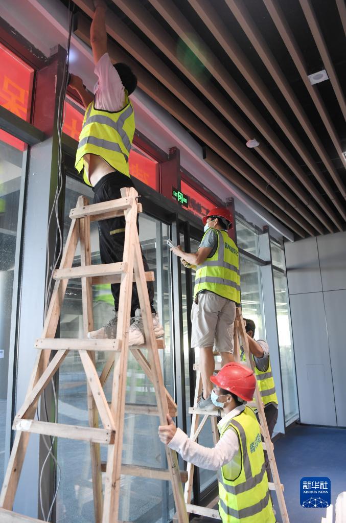 8月14日,工人在三亞第三方艙醫院作業。