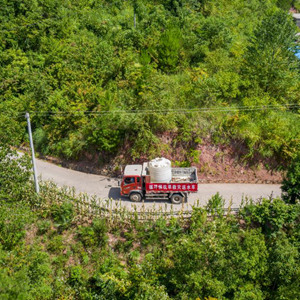 8月13日,在重慶市巫山縣騾坪鎮騾坪村,送水車行駛在山路上(無人機照片)。