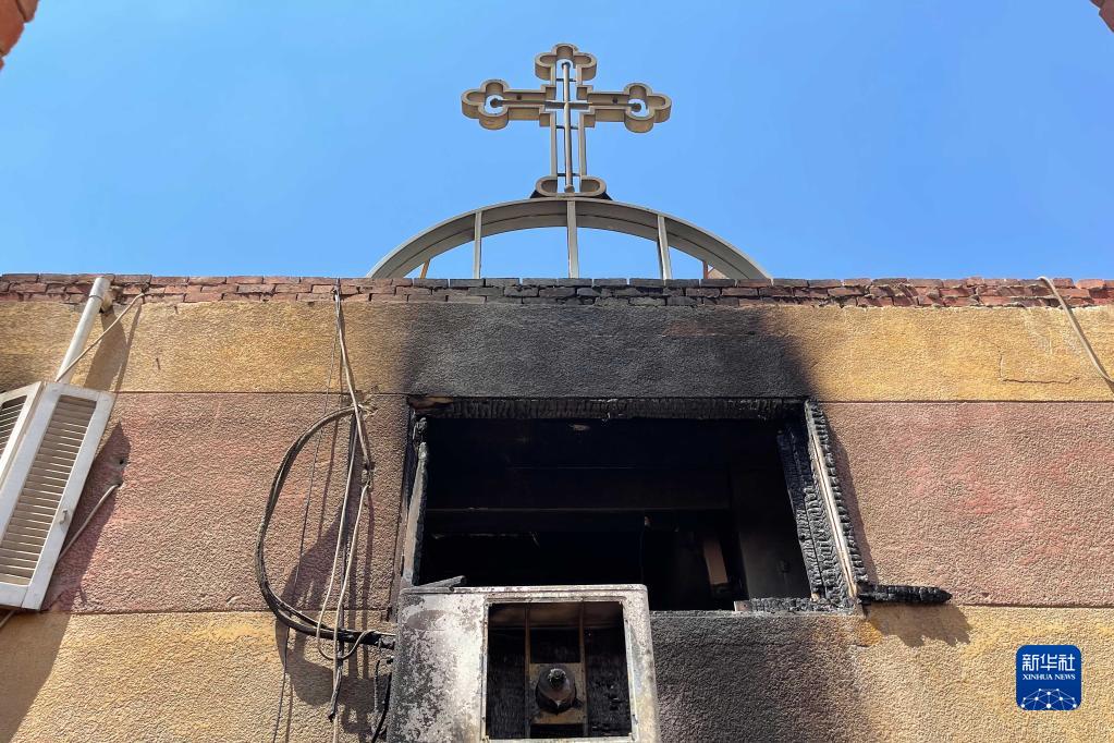 這是8月14日在埃及吉薩省拍攝的火災中損毀的教堂窗戶。
