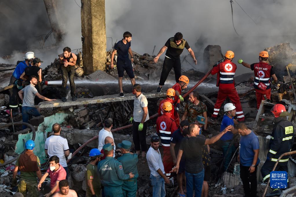 8月14日,救援人員在亞美尼亞首都埃里溫的購物中心爆炸現場工作。