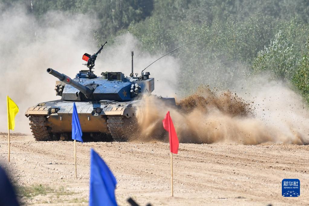 “國際軍事比賽-2022”中的“坦克兩項”比賽14日在俄羅斯莫斯科州阿拉比諾靶場繼續進行。在單車賽第三組第一場比賽中,編號336的中國參賽隊96B坦克亮相賽場,順利完成首賽。