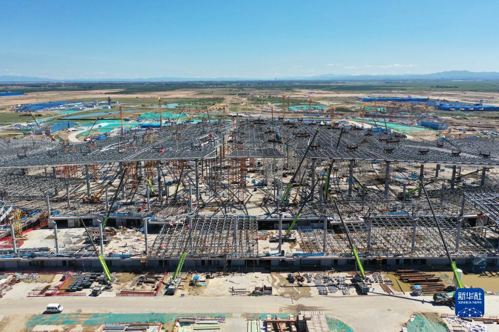 這是8月15日拍攝的呼和浩特新機場工程施工現(xiàn)場(無人機照片)。