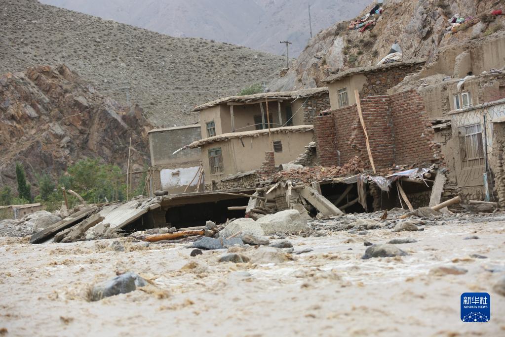 這是8月15日在阿富汗東部帕爾萬省拍攝的被洪水損毀的房屋。