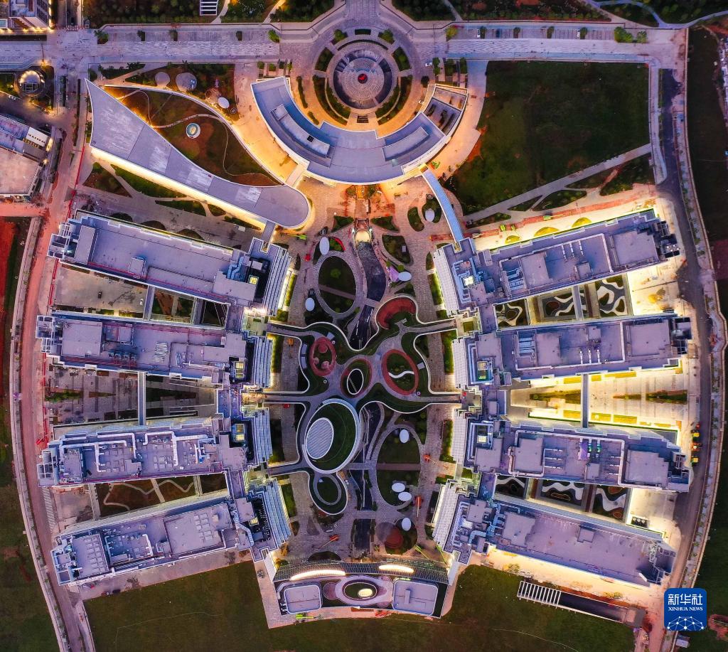 俯瞰蝴蝶展翅造型的香港科技大學(廣州)校園建筑群(8月16日攝,無人機照片)。