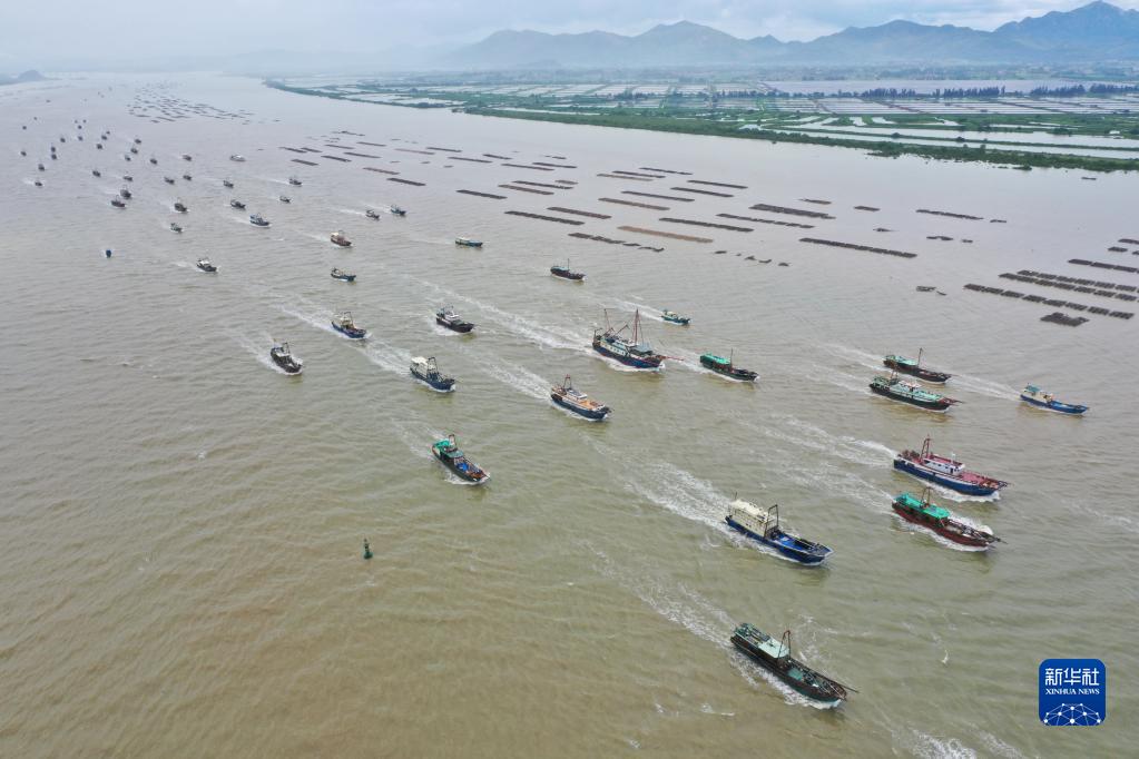 當日中午12點整,南海為期三個半月的伏季休漁期正式結束,停泊在廣東省江門臺山市汶村鎮橫山漁港的漁船駛向大海。