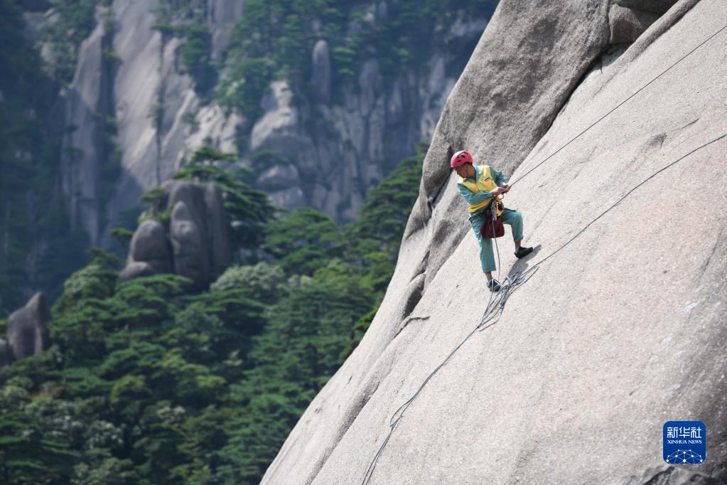 云海、奇石、迎客松……黃山上的這些風(fēng)景令許多游客印象深刻。在游玩時,大家也許還會遇見這樣一些人:他們或拿著設(shè)備獨自守護在迎客松旁,或在峭壁上攀爬清理垃圾……他們?nèi)諒?fù)一日地守護著美麗的黃山。
