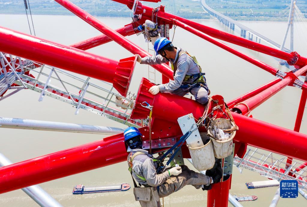 當日,位于安徽省銅陵市樅陽縣的長江跨越塔北塔封頂,標志著“西電東送”重點工程白鶴灘至浙江±800千伏特高壓直流輸電工程安徽段長江跨越塔全部組立完成。