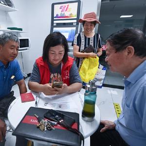 8月17日,在杭州市臨安區(qū)玲瓏街道東山社區(qū)便民服務(wù)站,黨員志愿者幫助居民填寫公租房申請(qǐng)資料。