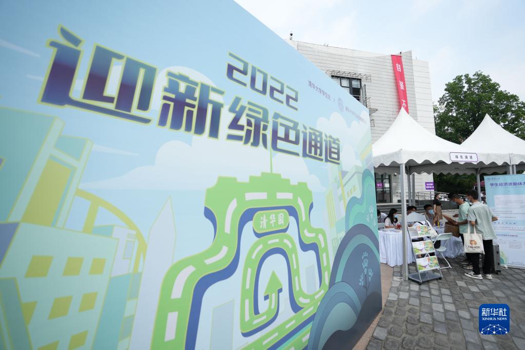 8月17日,在清華大學(xué)迎新點(diǎn)設(shè)立的迎新“綠色通道”處,學(xué)校工作人員為有需要的新生辦理無(wú)息臨時(shí)借款。