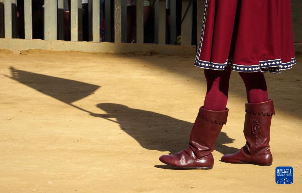 8月17日,一名表演者參加意大利錫耶納賽馬節(jié)古裝巡游。