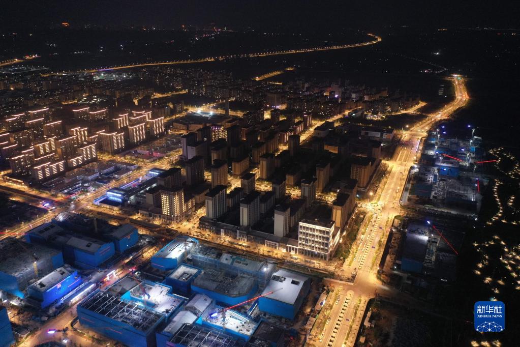 河北雄安新區容東片區及雄安·電建智匯城建設項目夜景(8月17日攝,無人機照片)。