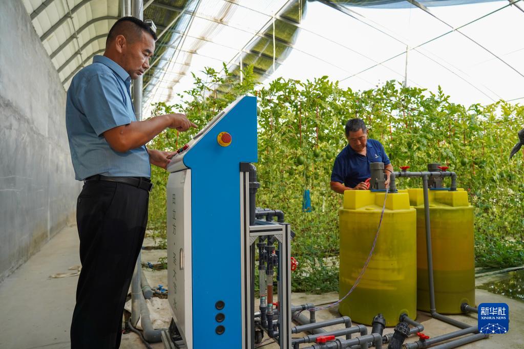 8月17日,技術人員在調試水肥滴灌設備。
