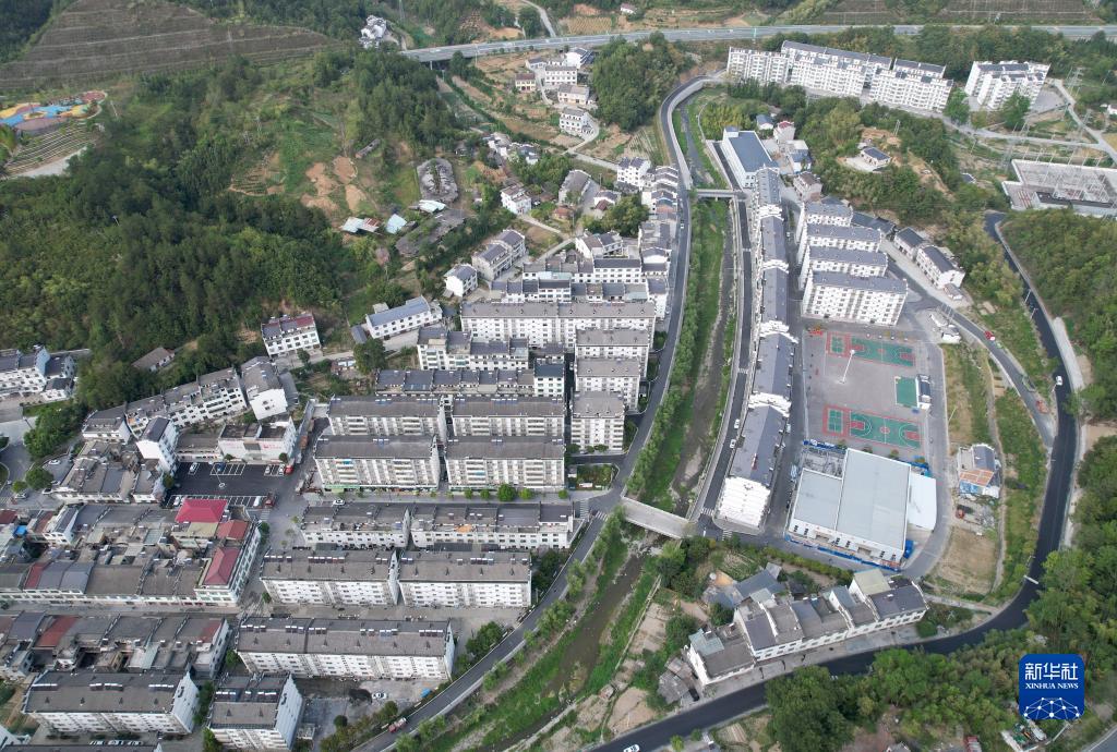 俯瞰老縣鎮錦屏社區(無人機照片,8月16日攝)。