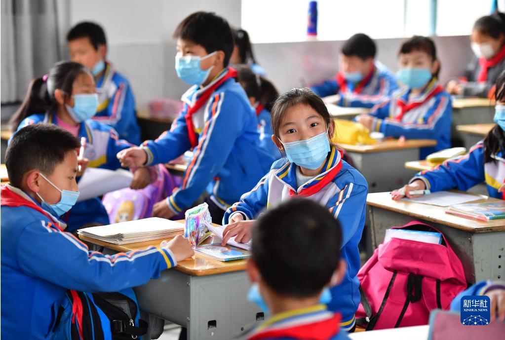 在老縣鎮(zhèn)中心小學寬敞明亮的教室內,學生在課間休息(2020年4月22日攝)。