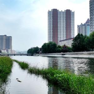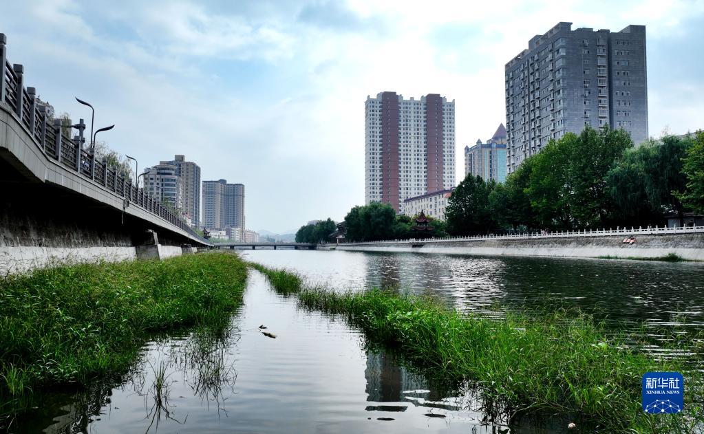 洛南縣的縣河穿城而過,治理后的河道流淌著清澈的河水(8月18日攝,無人機照片)。
