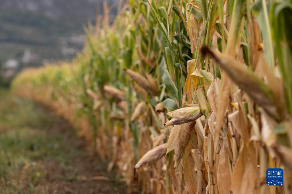 8月16日,在斯洛文尼亞戈里什卡區新戈里察市維帕瓦鎮的維帕瓦河谷,玉米因干旱枯萎。